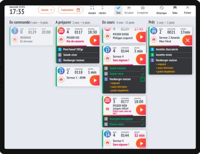 Minimisez les erreurs de saisie et de lectures des bons de commandes imprimés. L’écran de cuisine permet un suivi précis des modifications ou des demandes spécifiques des clients.